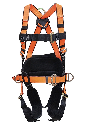 腰部及腿部配有軟墊。后腰墊配有吊環帶可供吊掛隨身工具袋,胸前配有小D環可供安全繩吊掛用、各部繫帶為子母扣式,可調整長度,經濟適用,舒適可靠。